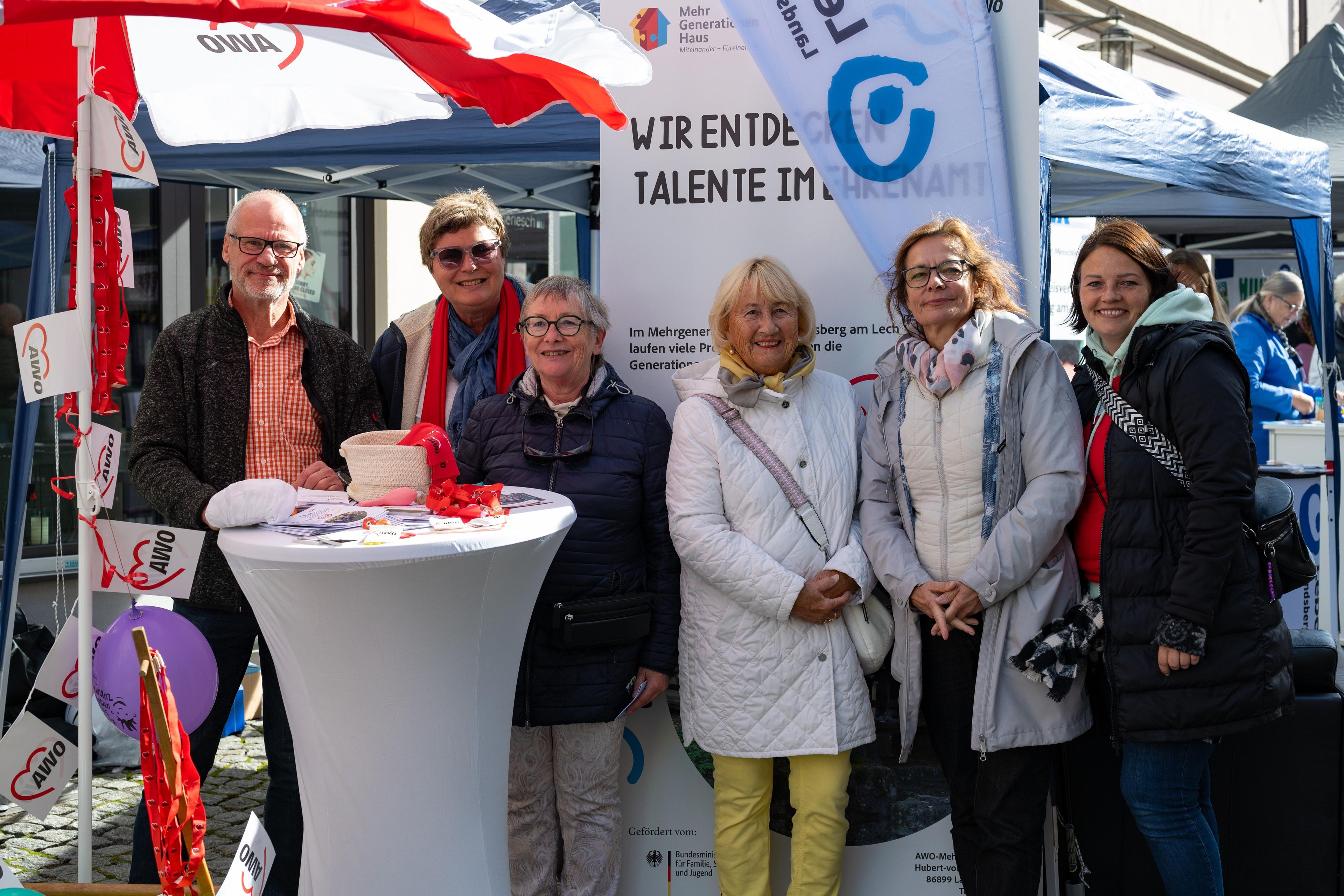 Ein Stand auf der diesjährigen Ehrenamtsmesse: Seite an Seite sprachen Aktive aus dem AWO-Mehrgenerationenhaus und den Sozialtherapeutischen Einrichtungen mit Passanten auf der Ludwigstraße. Viele Bürger sind bereits ehrenamtlich unterwegs. Andere überlegen noch. Bei der AWO in Landsberg am Lech gibt es zahlreiche Möglichkeiten für bürgerschaftliches Engagement.